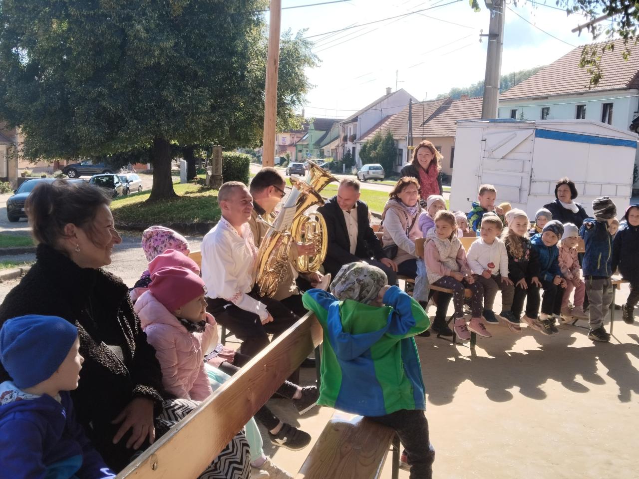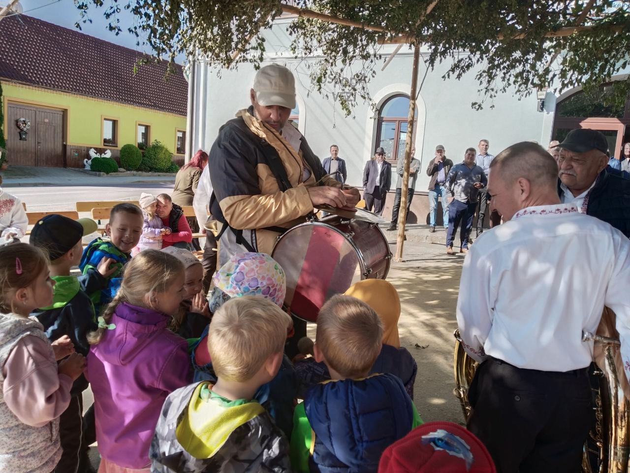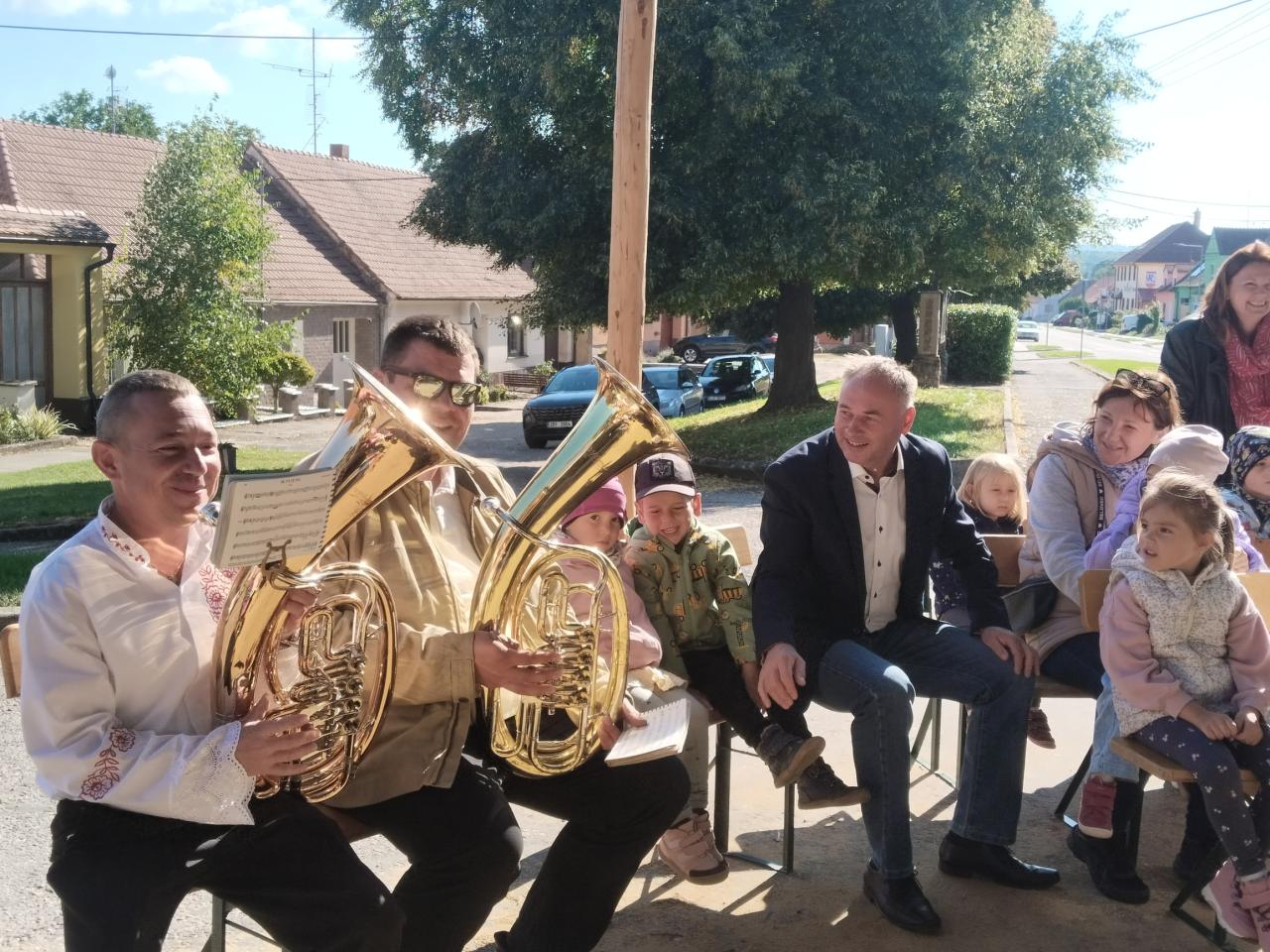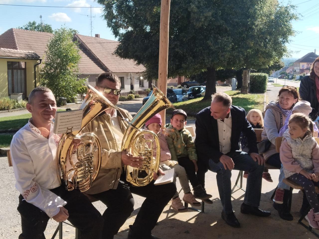 Užíváme si slavnostní atmosféru s muzikanty a ochutnáváme koláč