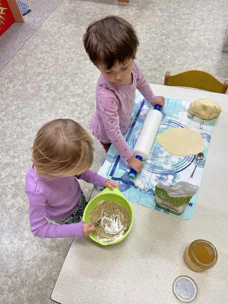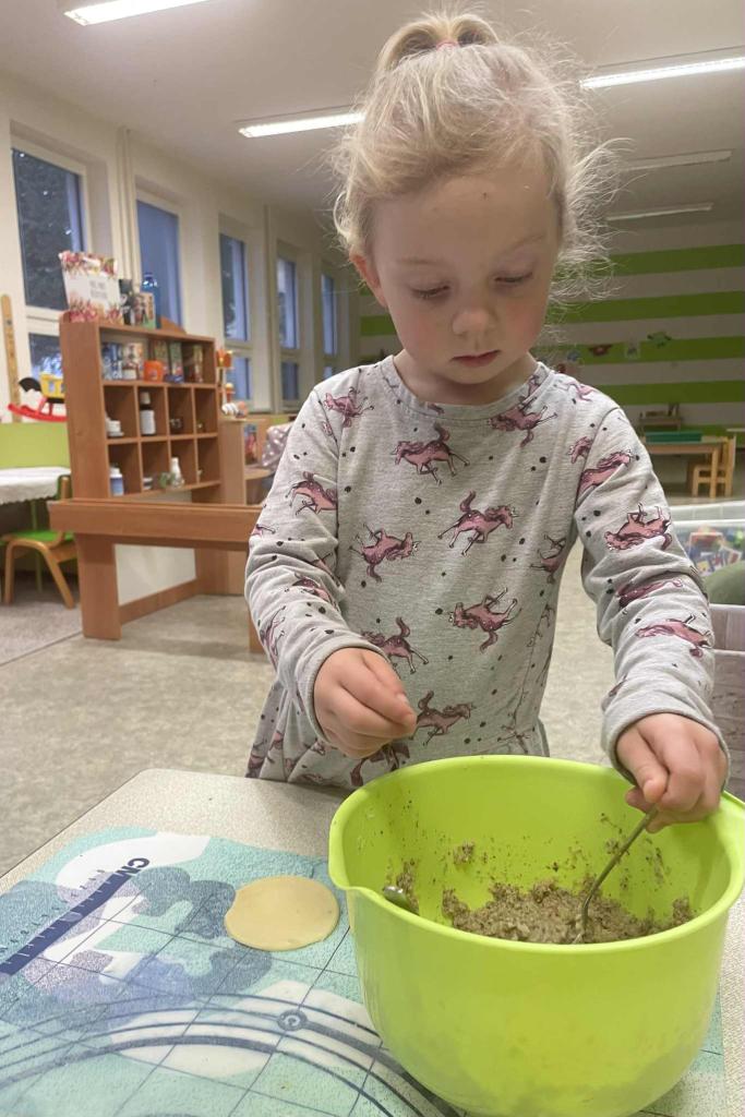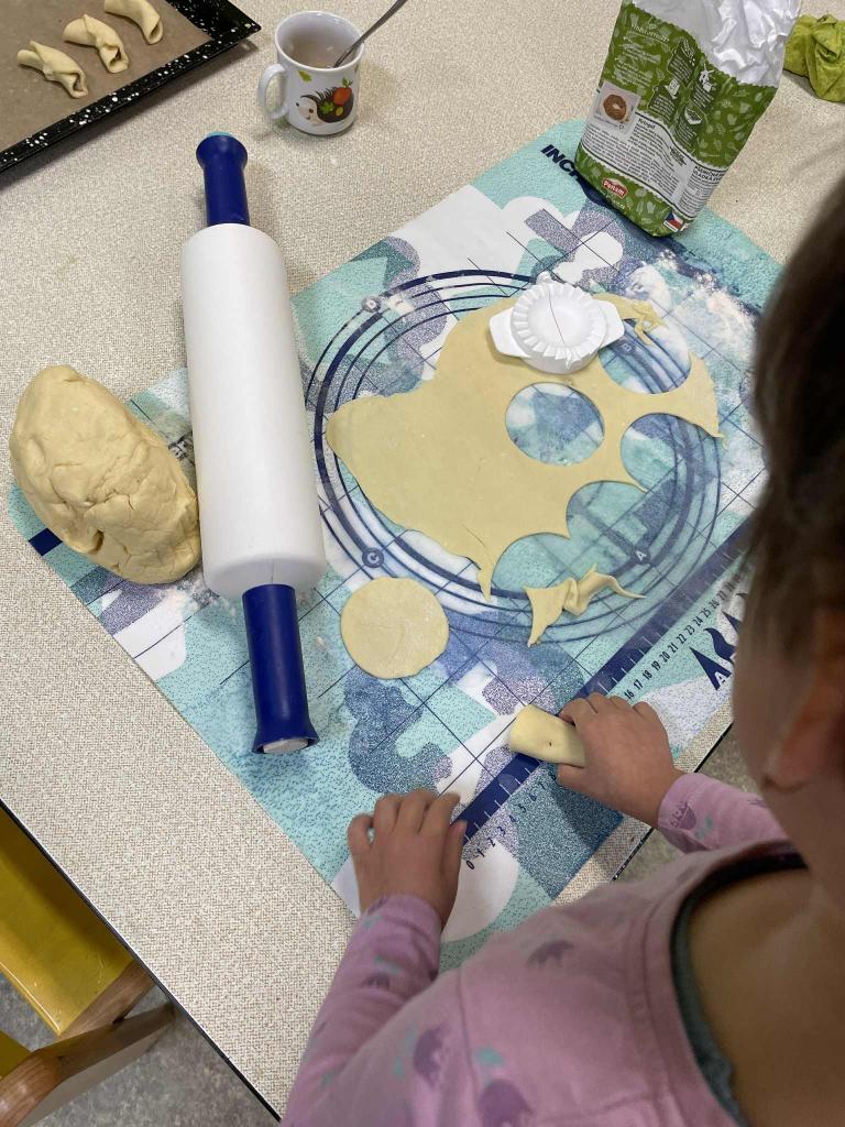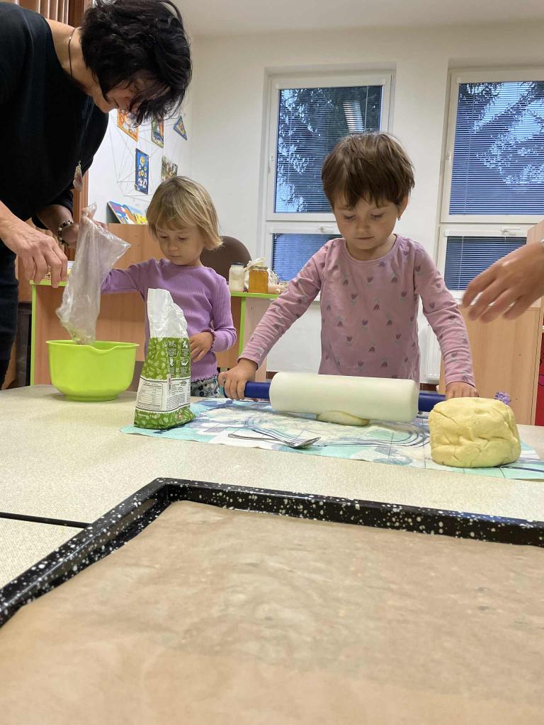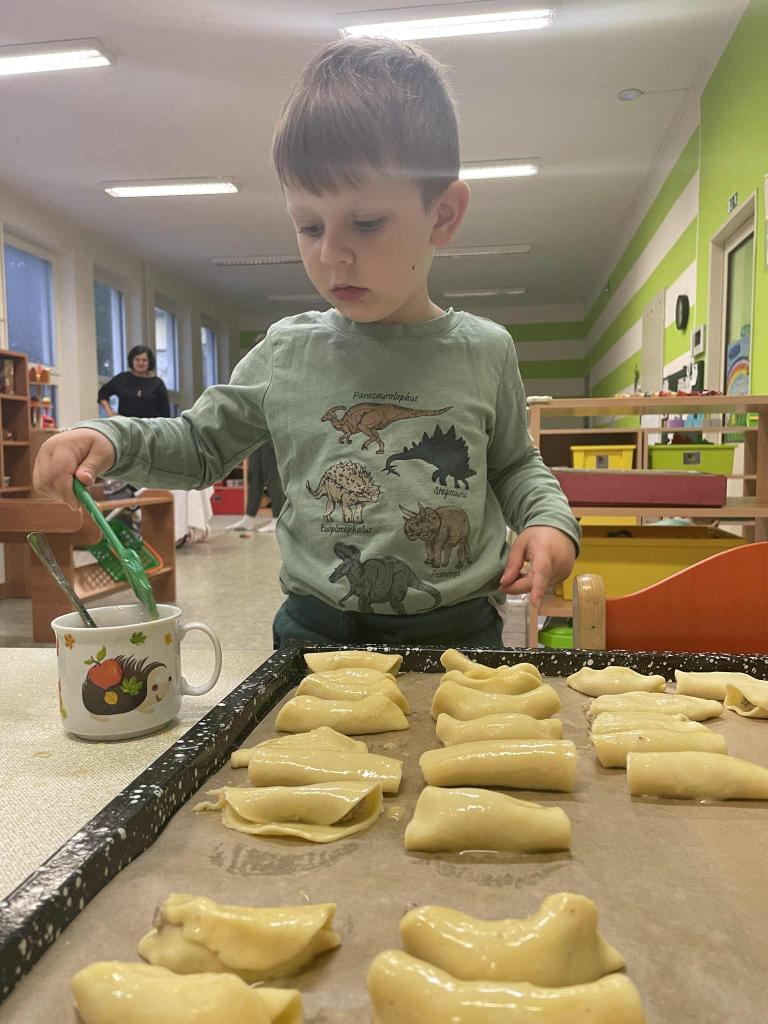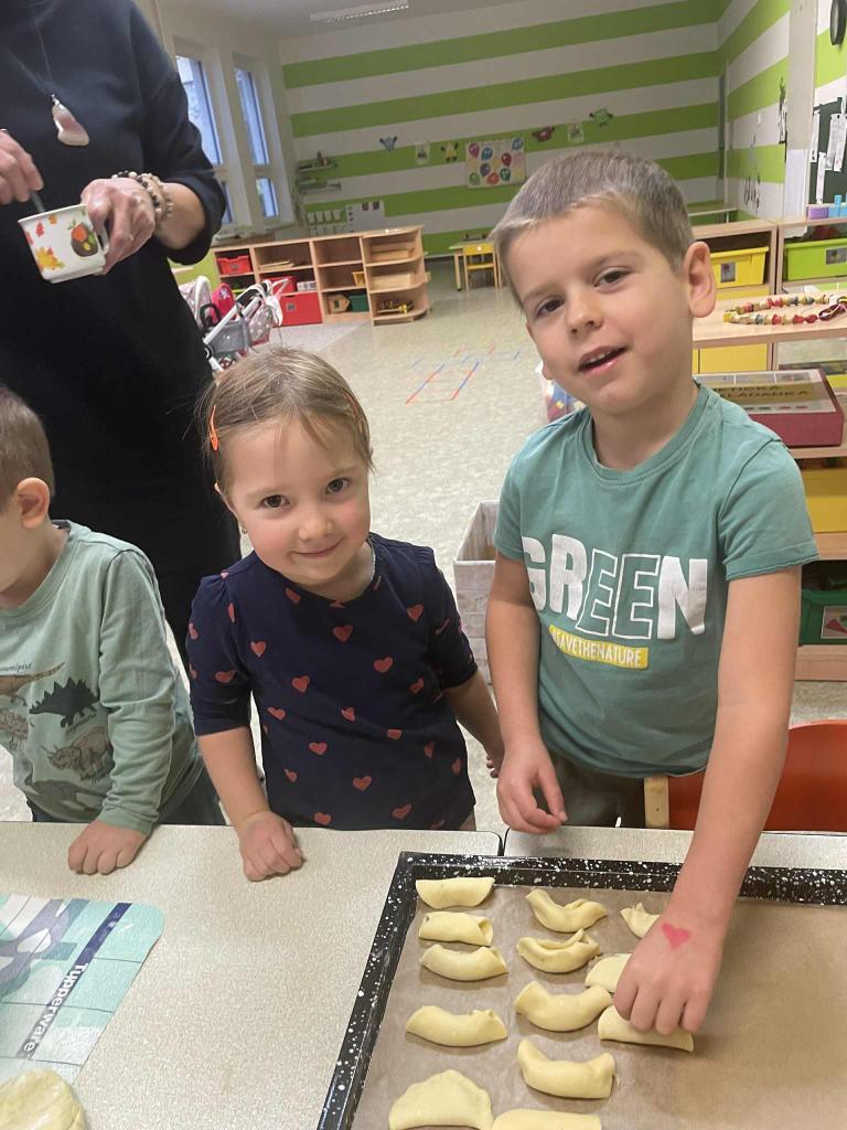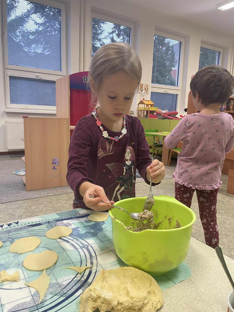 Máme týden Sv.Martina.Upekli jsme si svatomartinské rohlíčky. Když se trochu zastesklo,otevřeli jsme svá portfolia a prohlídli si své fotky s vámi. Taky jsme se starali o své kamarády při hře na doktora.V herně nesmělo chybět cvičení. Na procházce jsme bezpečně zdolali lávku a nasávali podzimní čas.